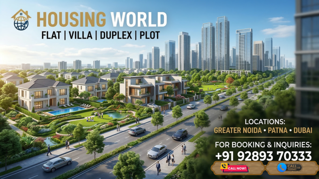 अगर आप Greater Noida, Patna या Dubai में Flat, Villa, Duplex या Plot खरीदना चाहते हैं तो आज ही Housing World से संपर्क करें।